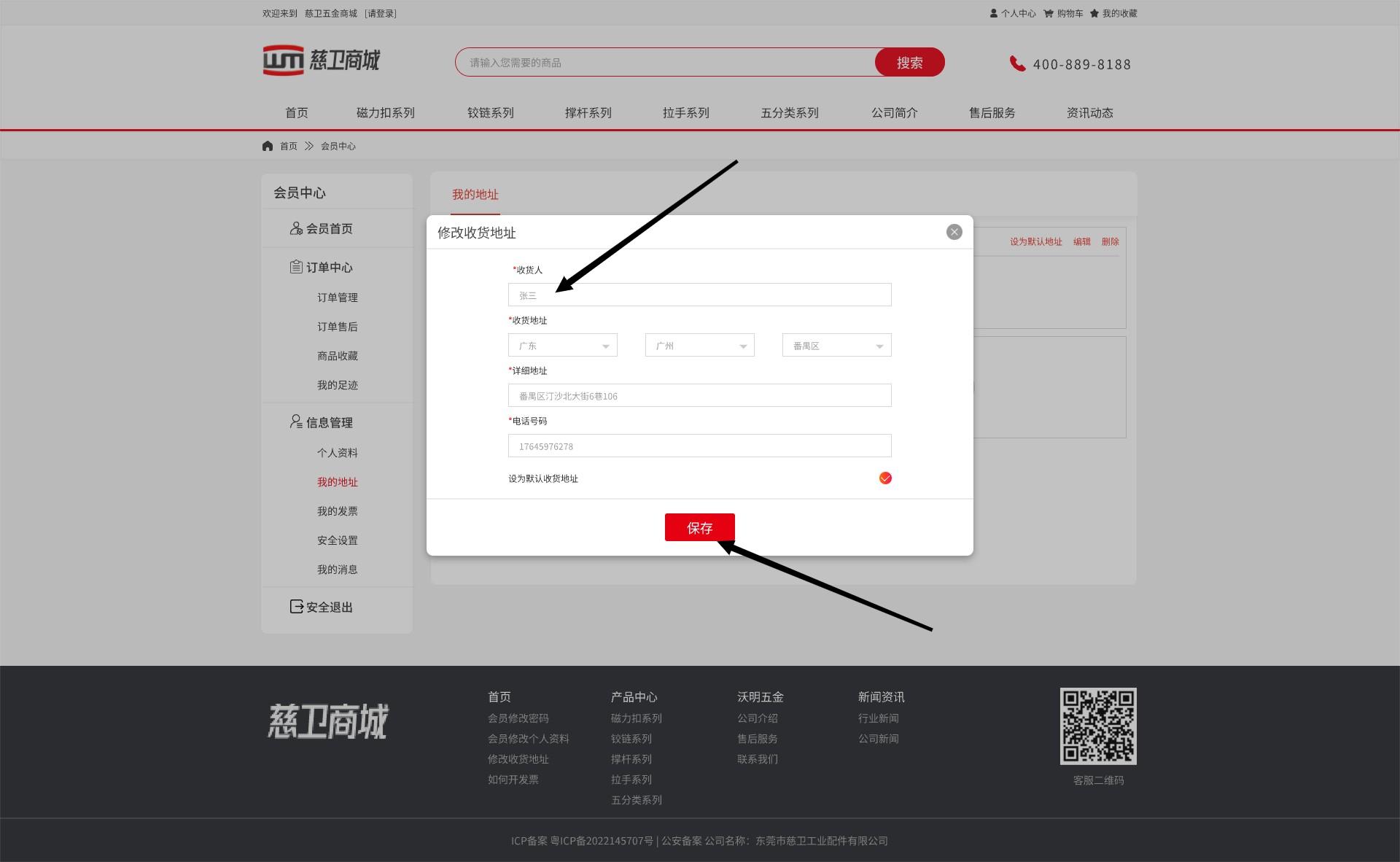 填写修改地址的信息,