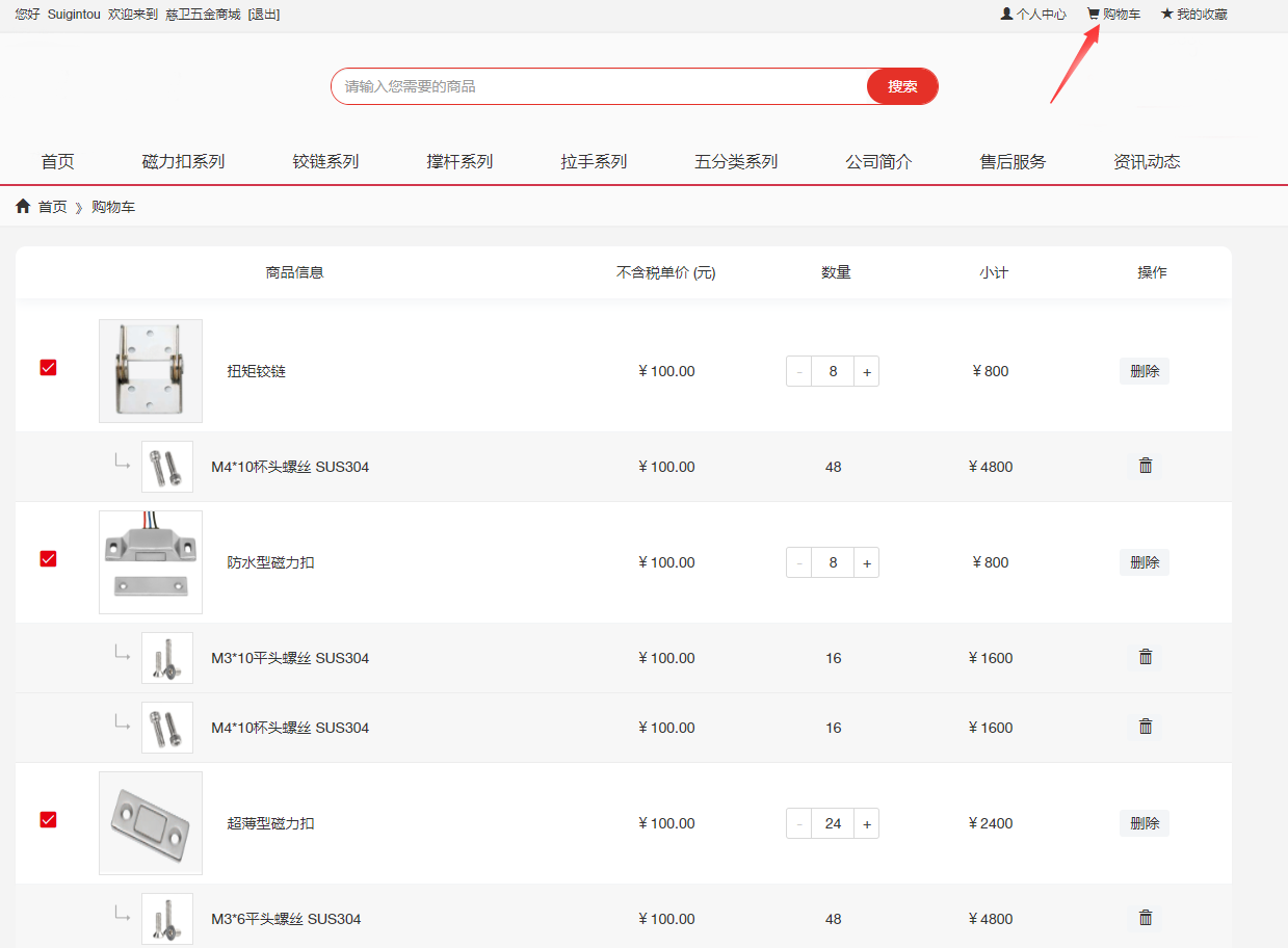 购物车可以有效提高购物效率和购物体验,您可以在购物车中再次确认和修改所选商品的型号和数量。