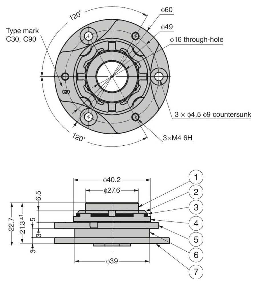 - 每 30°- 每 90°●电线可以穿过中轴孔。